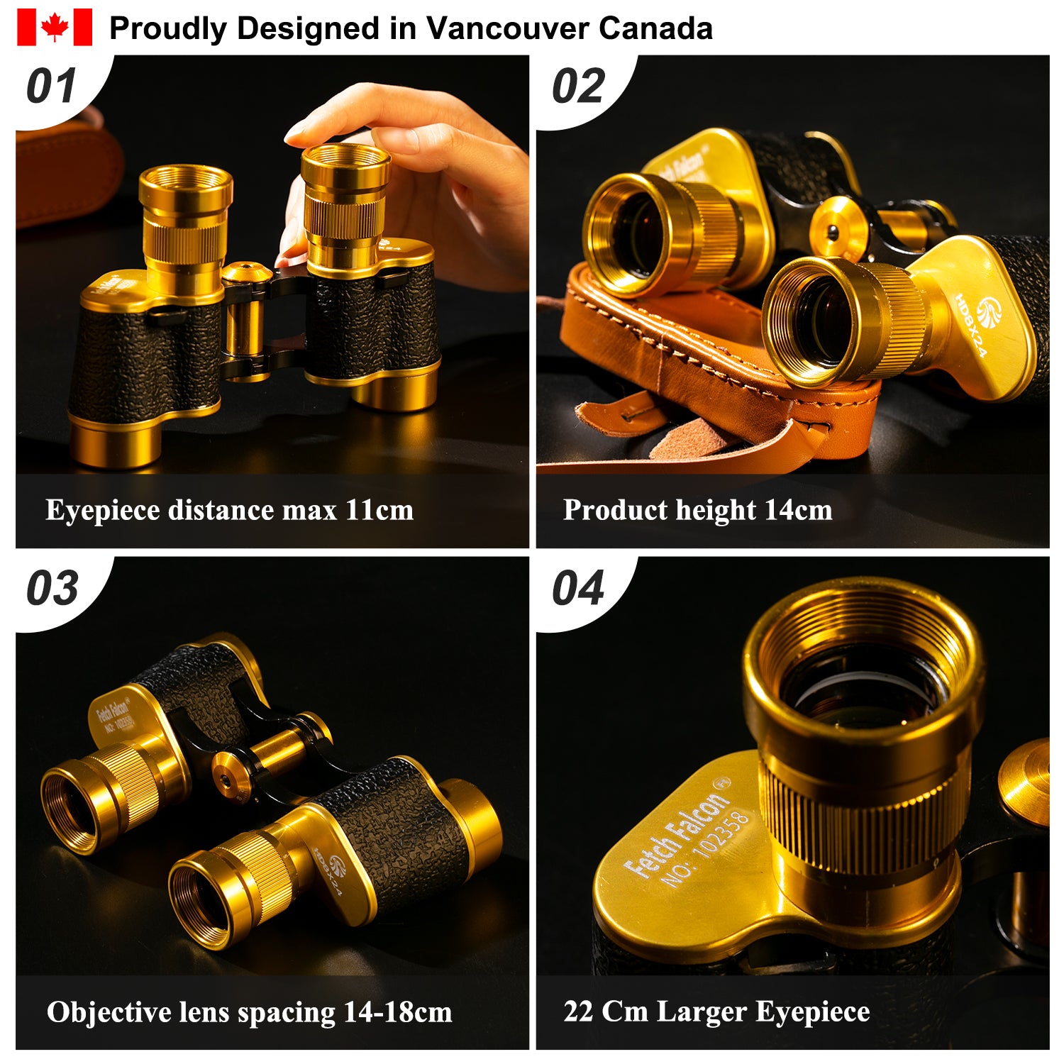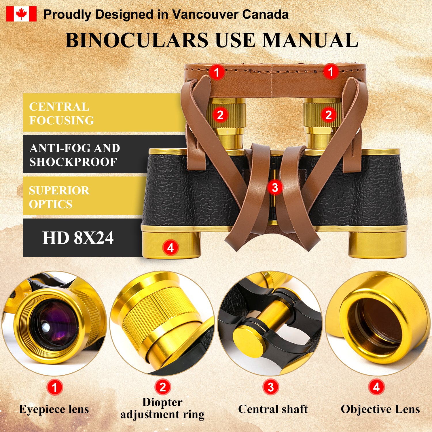 Binoculars Full Metal Body FMC BAK4 HD 8x24 (High-Powered, Water-resistance, and Portable) Ideal for Camping, Hunting, Tourism, and Mountain Climbing (Gold)