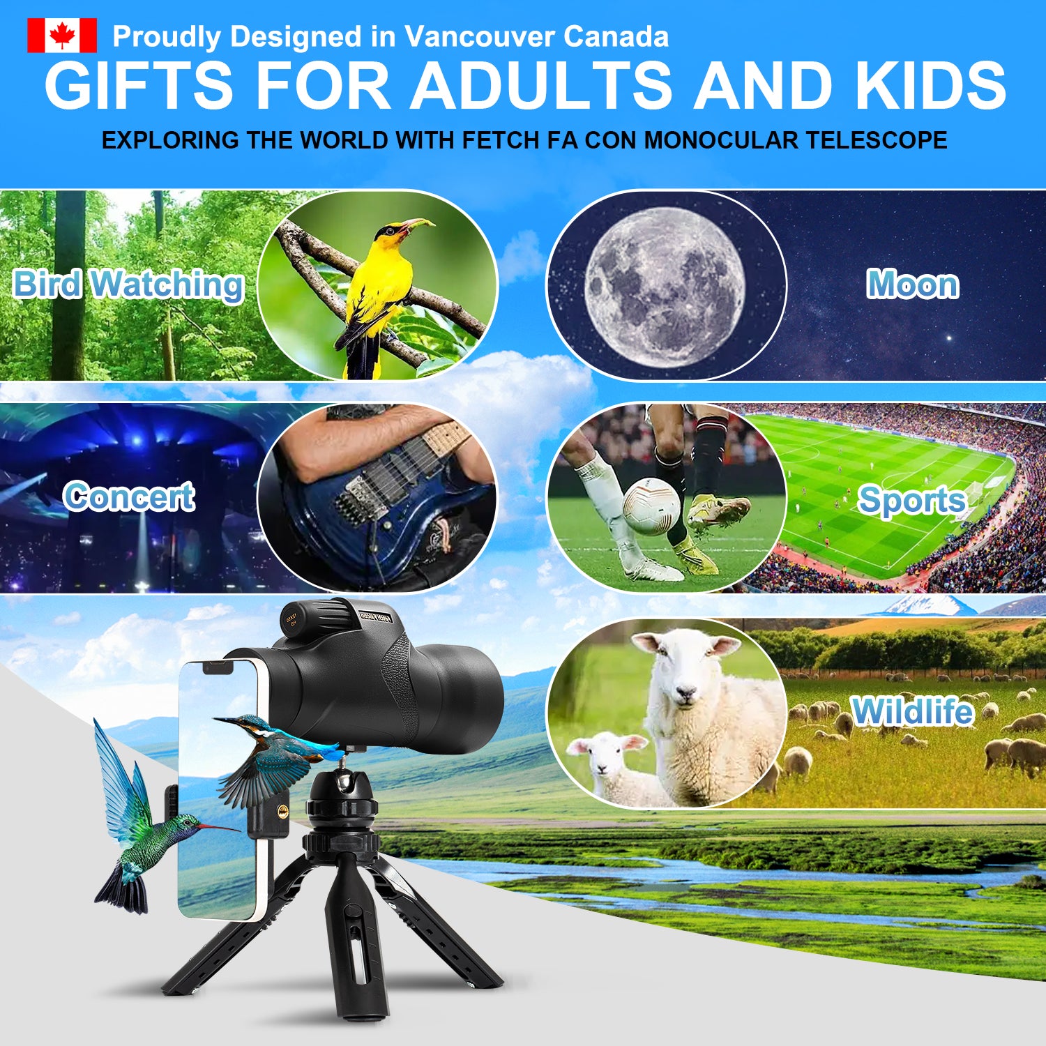 📱 Complete and Portable Monocular Kit: This compact monocular, weighing just 0.82lb and measuring 6.7x2.9 inches, includes everything you need for your outdoor adventures. The kit comes with a tripod, protective case, phone adapter for digiscoping, wrist strap, and lens cap, making it versatile and convenient for travel and various outdoor activities. Enjoy capturing and experiencing stunning views with ease.