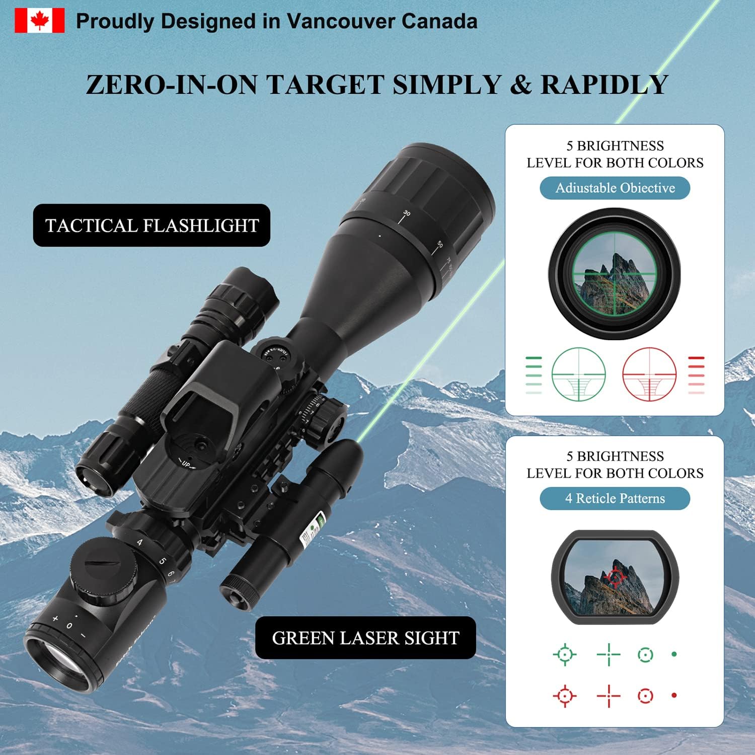 - Weather-resistant Design: Nitrogen-filled, waterproof, Anti-shock, and fog-resistance; Picatinny/Weaver mount and scope rings for easy installation.