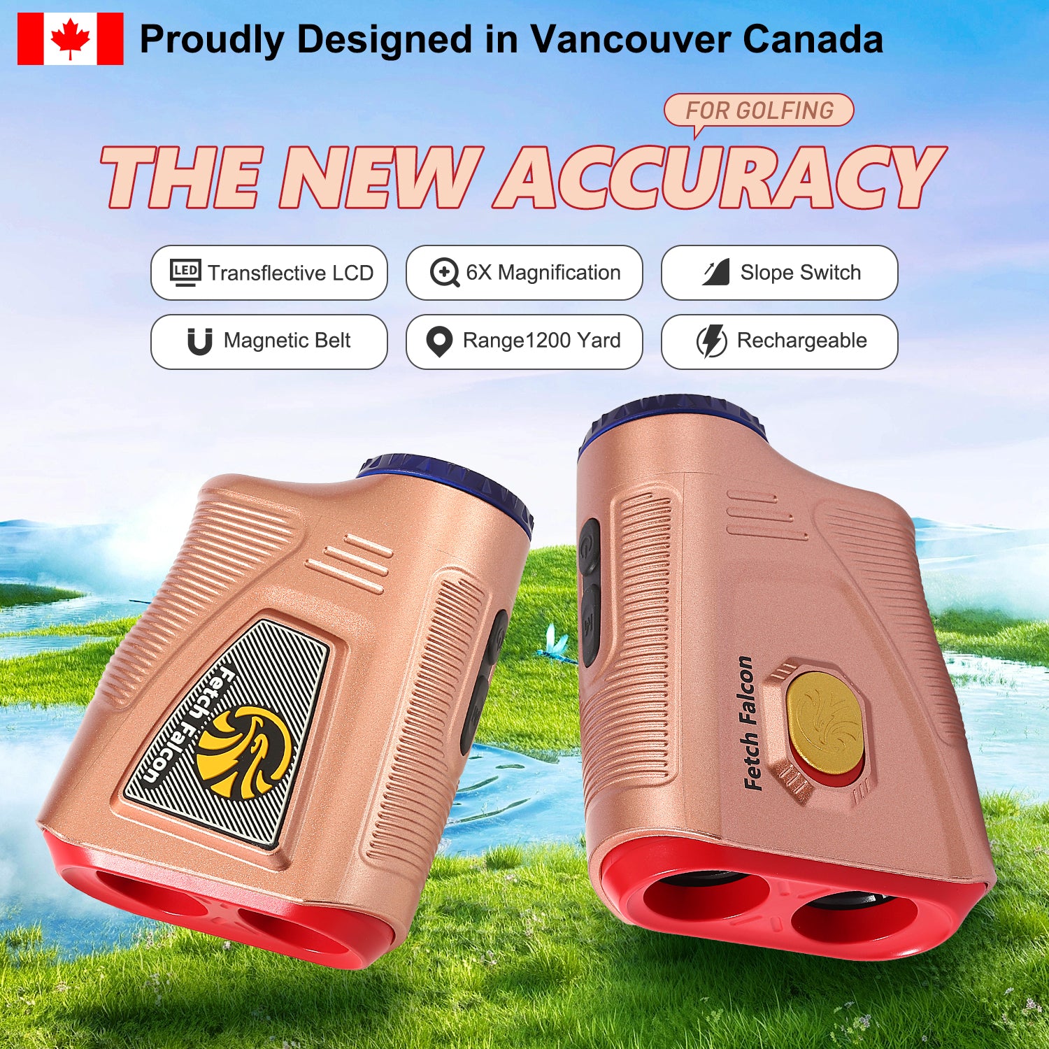 Fetch Falcon Rechargeable Golf Rangefinder – High Precision 1000 YD LCD Display, Slope Mode, 6X Magnification, Pole Flag Locking, Vibration (Rose Gold)