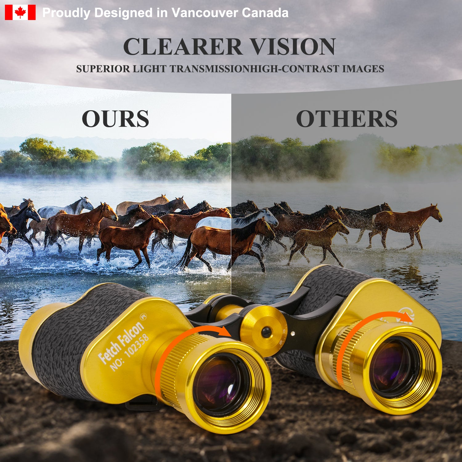 【Crystal Clear Optics】 Featuring Fully Multi-Coated (FMC) lenses and BAK4 prisms, these binoculars provide exceptional light transmission and image clarity. Even in low light, you'll enjoy bright, sharp views with true-to-life colors. Perfect for dawn or dusk outings.
